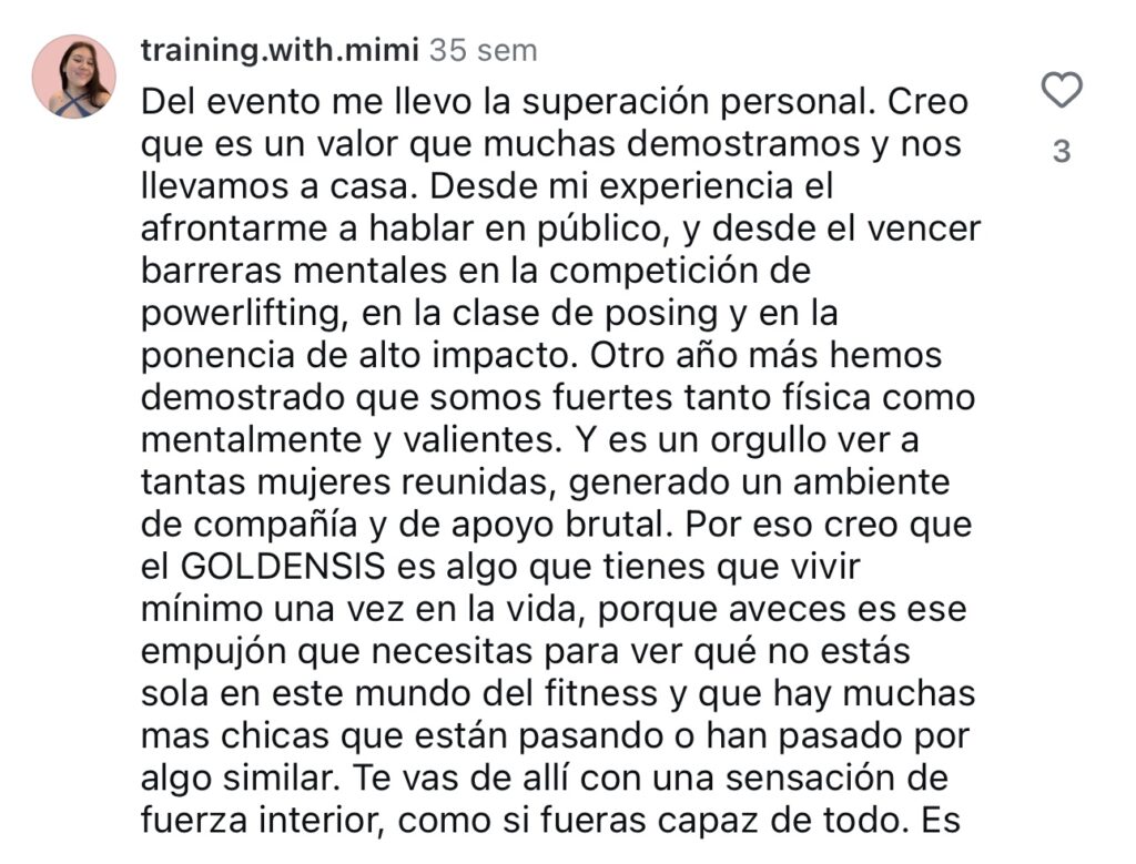 Tendremos la oportunidad, aquí, de asistir a una ponencia sobre entrenamiento con Mariam, la fundadora del evento, que nos hablará de cómo crear un entrenamiento perfecto y nos enseñará como hacerlo.